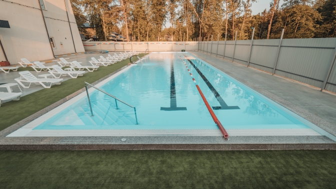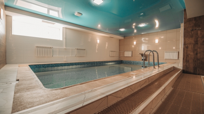 — открытый (уличный) круглогодичный термальный бассейн (теплый, 25×6 м, от здания расположен в 100 м);
